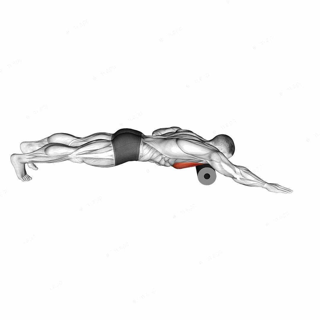 Lie on your stomach with the foam roller positioned under one side of your upper chest, slightly below your collarbone and towards your armpit.