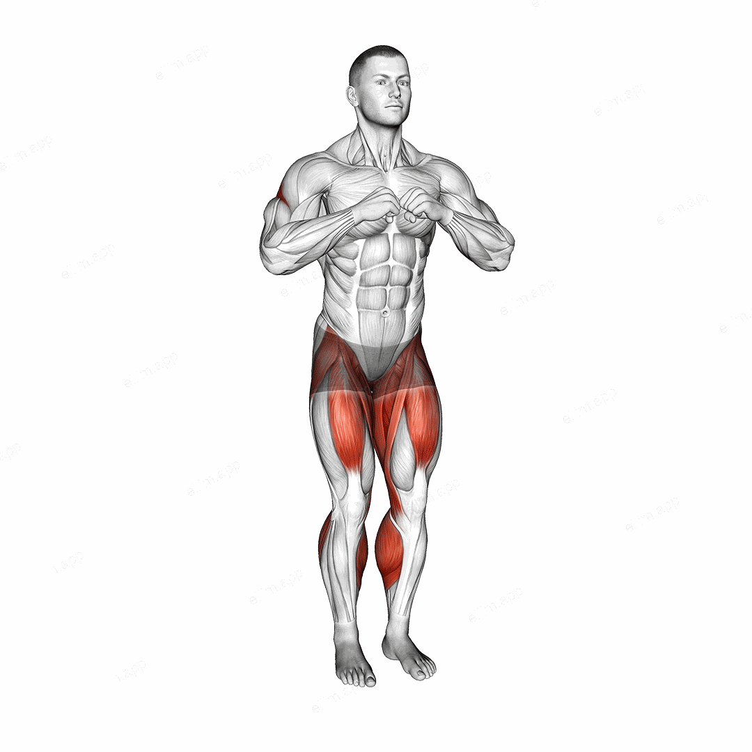 Begin standing with your feet hip-width apart, knees slightly bent, and arms extended straight forward at shoulder height, palms facing each other.