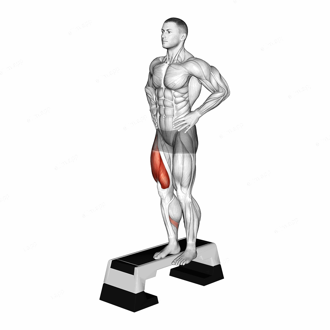 - Imagine driving your elevated foot into the step as you ascend, activating your glutes and quadriceps for a strong push back to the start.