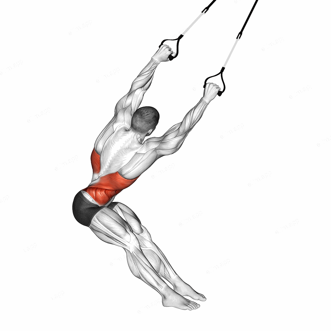 Lean back slightly to create tension in the straps, then hinge at your hips, keeping your back straight and core engaged.