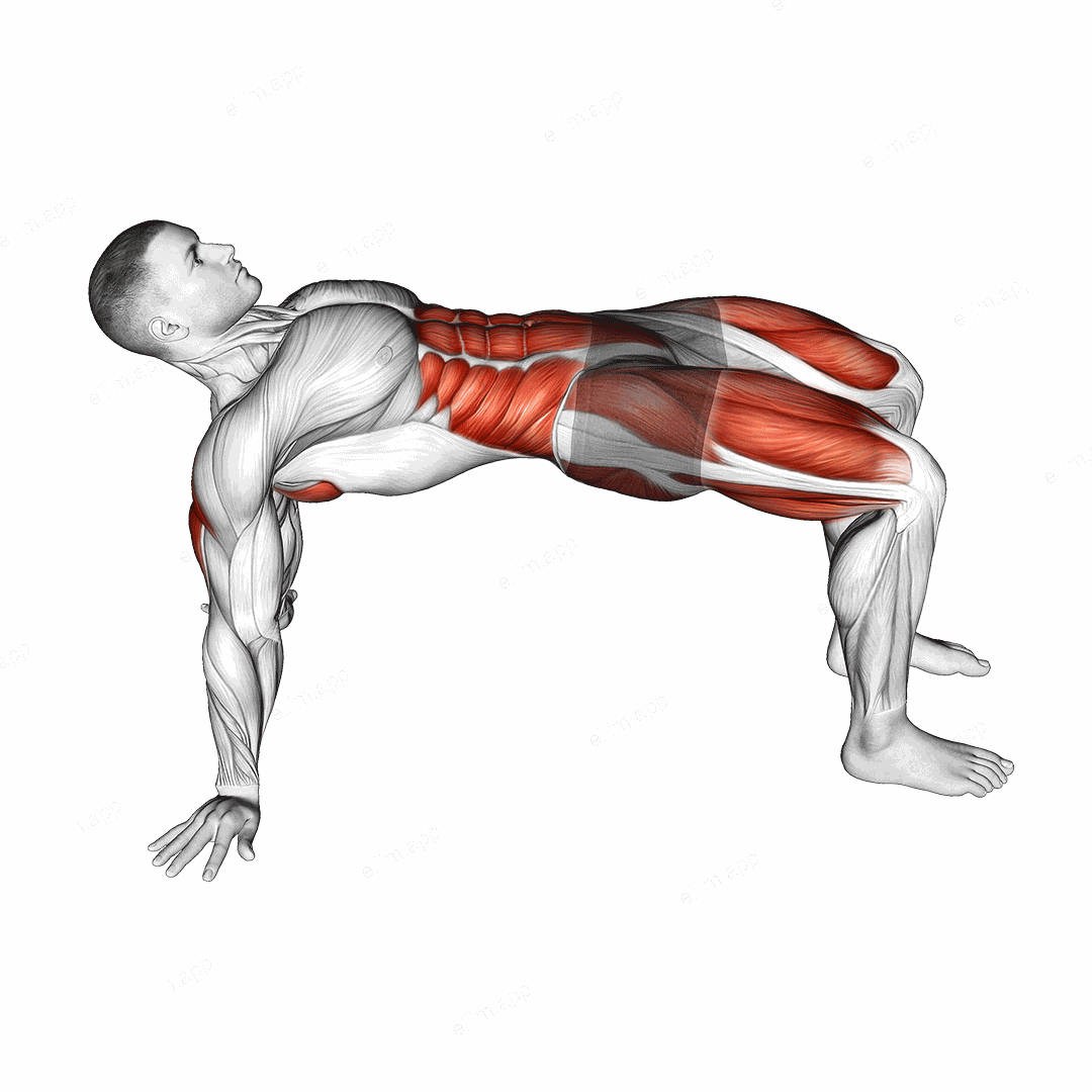Enhance hip mobility and core stability with the Table Top Bridge Rotation. This dynamic bodyweight exercise strengthens your glutes, shoulders, and