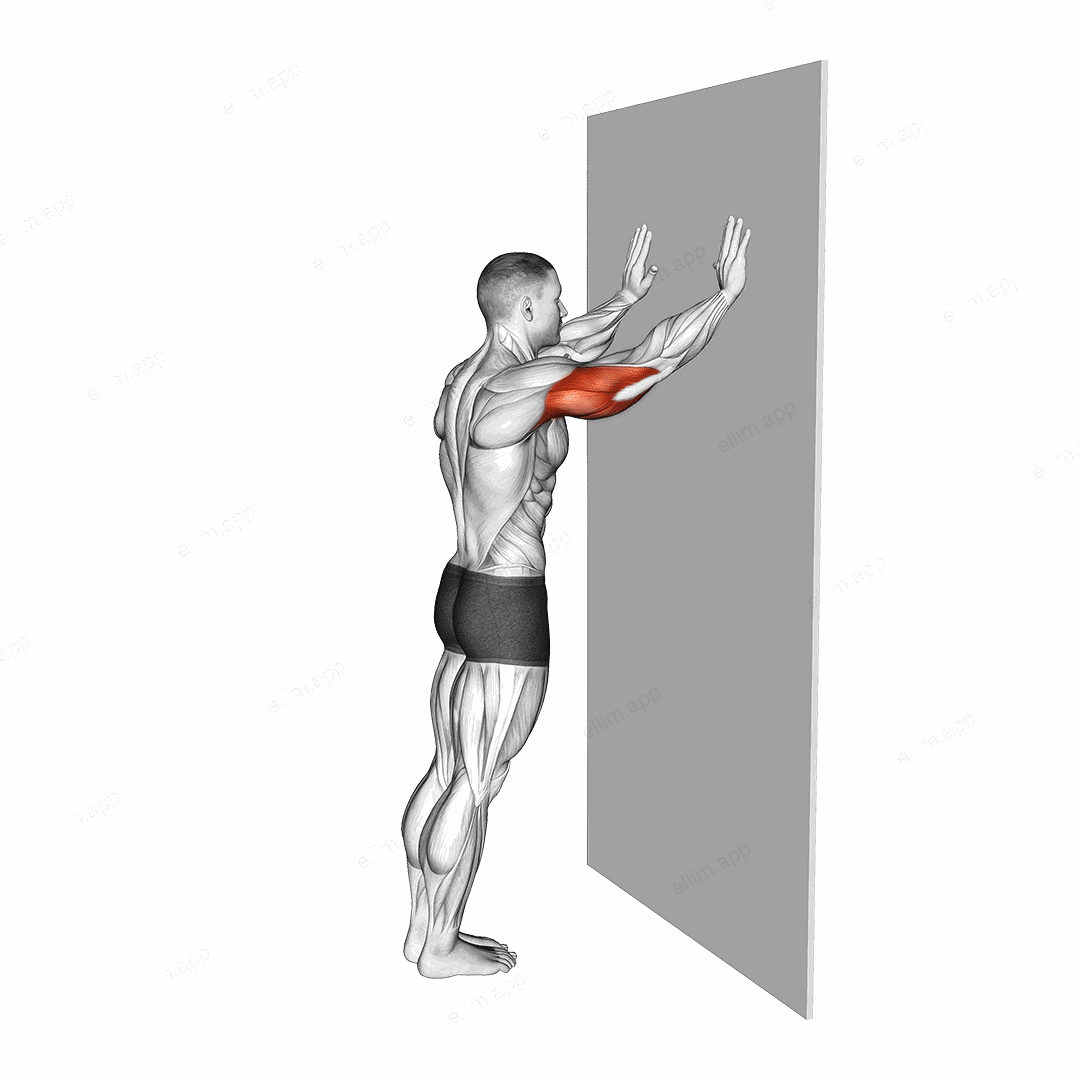 Immediately pulse back slightly by extending your elbows just a few inches, pushing your body away from the wall using your triceps.